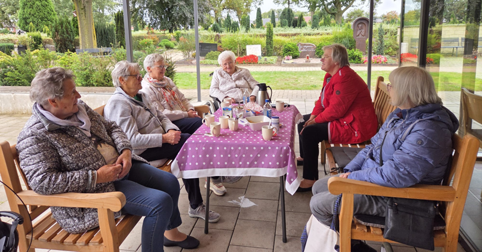 In den warmen Monaten findet sowohl in Neuenkirchen als auch in St. Arnold regelmäßig das Friedhofscafé statt. Wenn Sie ebenfalls Lust haben, Friedhofsbesucher:innen einen schönen Nachmittag mit Kaffee und Gesprächen zu gestalten, melden Sie sich gerne!